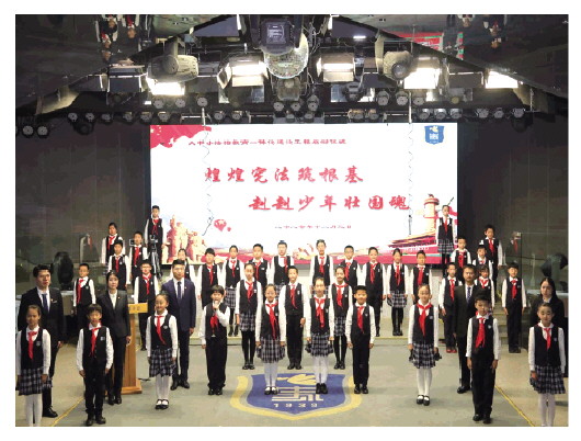 聘任仪式结束后,史家小学和北京二中举办了青少年法治教育公开课,法大师生和小学生们一起通过诗歌朗诵、宪法宣誓、视频微课等形式开展了宪法宣传活动。