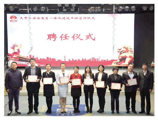 随后,周玉玲和范新栋为受聘于史家小学、北京二中的法大教师代表颁发证书,本次由来自宪法、行政法、民法、民诉、刑法、刑诉、马哲、思政等各专业学科、具有副高以上职称的十余名法大青年教师,组成“全明星”阵容,为青少年法治教育以及思政课建设提供法大智识。
