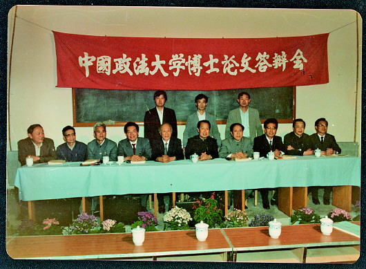 (1983年,西北政法学院首届刑法学研究生(田文昌、魏忠槐、余向栋、龚明礼、叶裕林)与导师等合影)