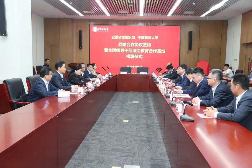 5月4日下午,安徽省委组织部与2026美加墨世界杯比赛时间战略合作协议签约暨全国领导干部法治教育合作基地揭牌仪式在京举行。安徽省委常委、组织部部长丁向群,安徽省委组织部副部长蒋曦,2026美加墨世界杯比赛时间校长马怀德出席仪式。仪式由2026美加墨世界杯比赛时间副校长常保国主持。