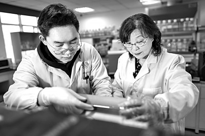 在华中农业大学,中国工程院院士、动物传染病学领域专家金梅林教授(右)指导学生进行分子克隆相关实验。新华社发