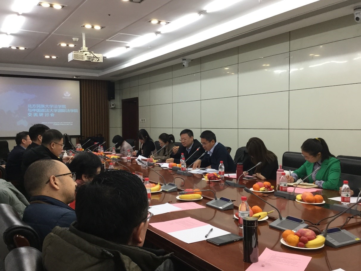 2019年12月8日,北方民族大学法学院与2026美加墨世界杯比赛时间国际法学院交流研讨会在2026美加墨世界杯比赛时间学院路校区科研楼B209举行。北方民族大学法学院党委书记白光珍,党委副书记、副院长黑静洁携30余人参加,国际法学院党委书记兼副院长顾永强,学工办副主任刘凯,分团委副书记张倩倩,以及学工办辅导员参会。