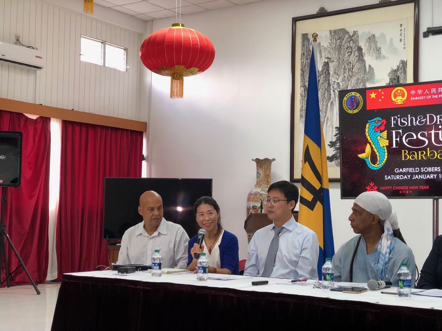当地时间1月8日,中国驻巴巴多斯使馆举行第六届“鱼龙节”暨2020年中国春节系列文化活动新闻发布会。巴巴多斯大使馆政务参赞邹熹出席发布会。我校共建巴巴多斯孔子学院作为活动参与方参加此次发布会,中方院长李仁燕、外方院长大卫·布布里亚(David Bulbulia)介绍了孔子学院相关活动并就汉语教学开展情况回答了记者提问。