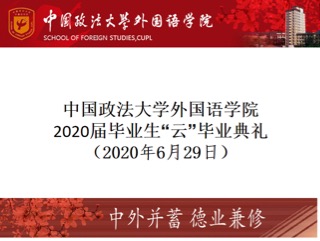 随后,2020届本科生代表李斯特、外国语言文学硕士代表徐明及翻译专业硕士代表赵钰伶发言。李斯特分享了她初遇法大时的感动和期待,向母校与师长表达了诚挚的感谢之情,同时她表示自己会将牢记法大人的使命,践行外院院训,继续努力、不负韶华,为母校再添光彩;徐明回顾了三年的研究生时光,感恩研究生同学同窗三年的陪伴,感谢授课老师与辅导员们的默默支持与无私奉献,并对同学、老师和学院送上最真诚的祝愿;赵钰伶回首了两年的求学之路,感慨是其永生难忘的一课,在外院求学、在法大修身,不仅学会感恩,在学习中增长知识,还勇于担起青年的责任,胸怀天下,在给予法大授课老师与同学们诚挚的感谢后,还为同学、老师、外院和法大送上祝福,愿法大精神与毕业生们一路相随。