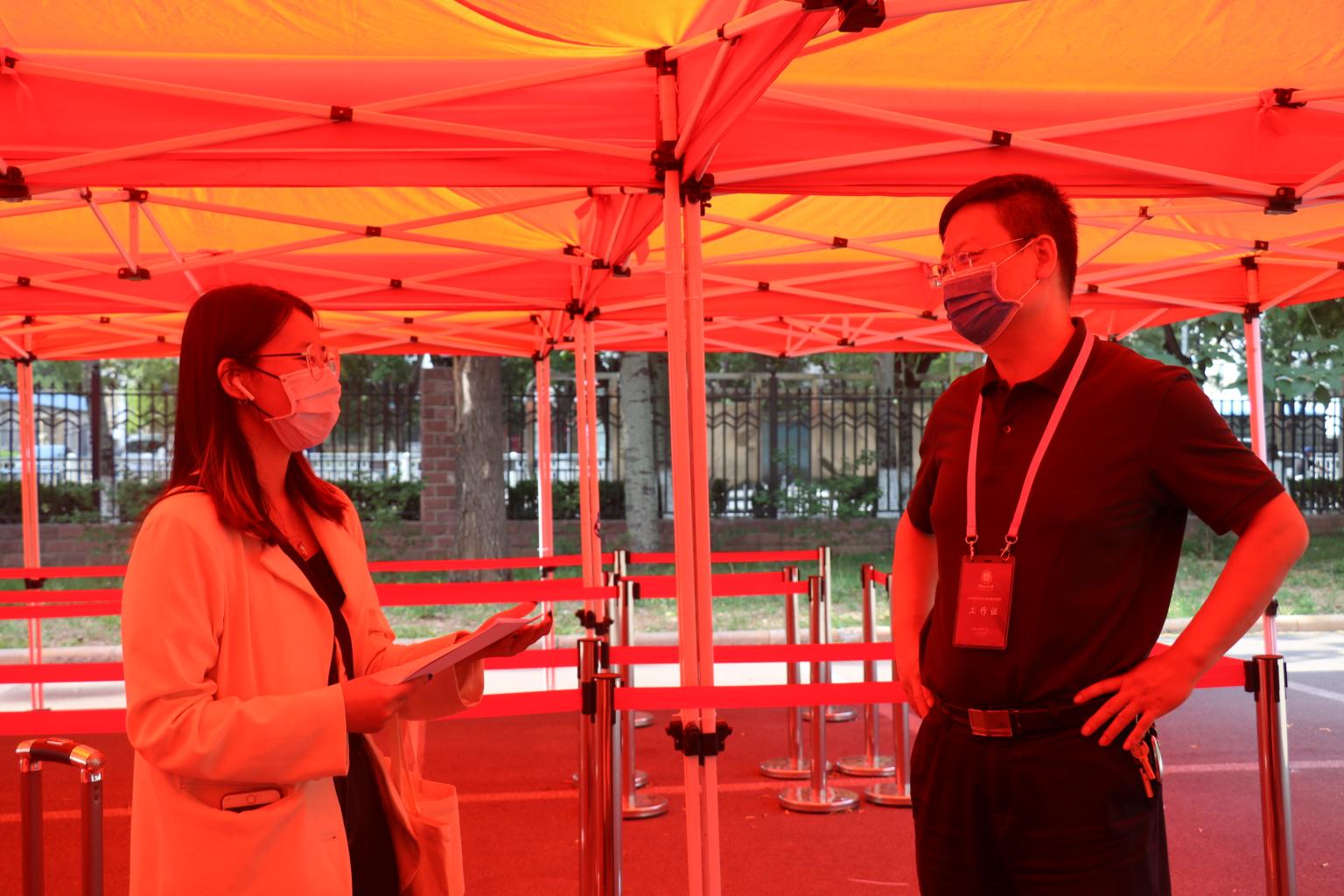6月12日,首批毕业生正式返校,教师志愿者在火车站和机场迎接学生,校门口设立学生返校专用通道和遮阳帐篷,学生进入校园后,须经过体温测量、人脸识别、行李物品消杀后,进行学院报道注册。学院学工团队分组全天候待命,帮助每名返校毕业生完成京心相助报道、健康宝查验、核酸检测证明收取、在校须知讲解、“防疫包”“爱心包”发放等工作,确保第一时间迎接每一名返校毕业生,让每一名毕业生切实感受到学院的温暖和关怀。