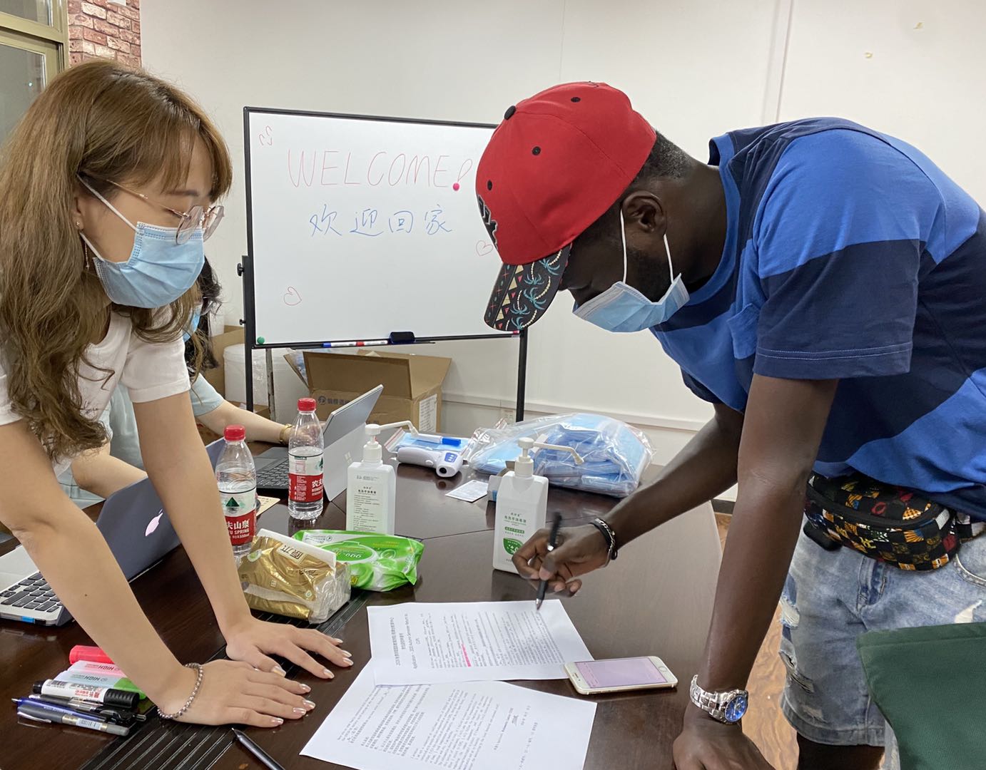 全程返校同学间隔一米,依次排队按序办理手续,签署《学生返校申请书》,避免聚集。本学期学院为同学们准备了口罩、体温计等防疫物资,在完成新学期注册手续后,学院老师会就返校同学在校期间需遵守的学校各项规定,包括体温打卡、请假外出、宿舍查寝等问题向同学们说明,并反复提醒大家保护好自己,迎接一个快乐的新学期。