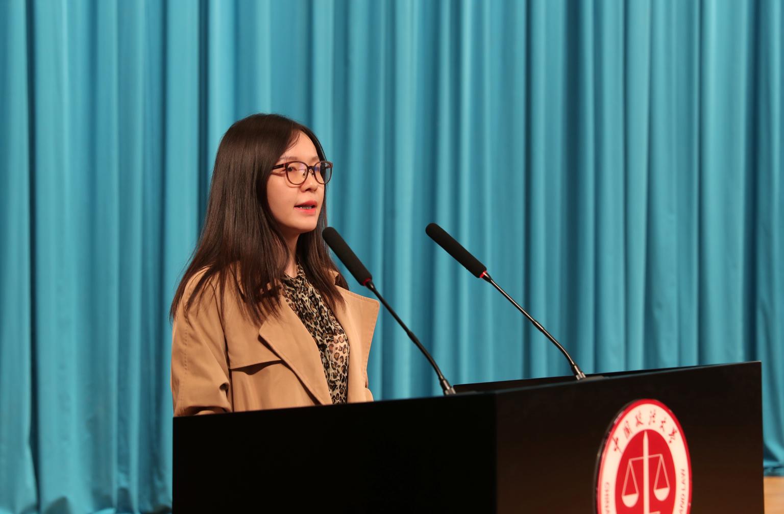 学院教师代表宗婷婷博士为研究生新生们勾勒了一幅在法大这所法学最高殿堂学习生活的美好画面,并向研究生们提出了三点建议:一是以高质量的就业为目标,增强职场竞争力。她希望同学们不仅要扎实掌握书本知识,还应积极发挥自身交叉学科优势,锻炼法律实务技能,提升自身职业素养。二是合理安排学习时间,制定学习计划,合理安排学习休闲时间,做到“内在有激情,外在从容不迫”。三是保持心理健康和身体健康,拥有良好的生活情趣,保持积极的人生态度。