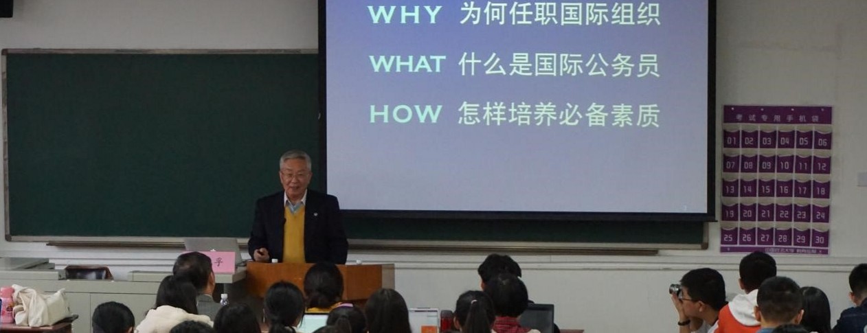 宋先生以“WHY”(为何任职国际组织)、“WHAT”(什么是国际公务员)、“HOW”(怎样培养必备素质)为主线,结合自身40年的国际工作经验,充分又生动地介绍了国际公务员的入职要求与工作环境,鼓励同学们应时代召唤、国家需求,到国际组织实习、任职。