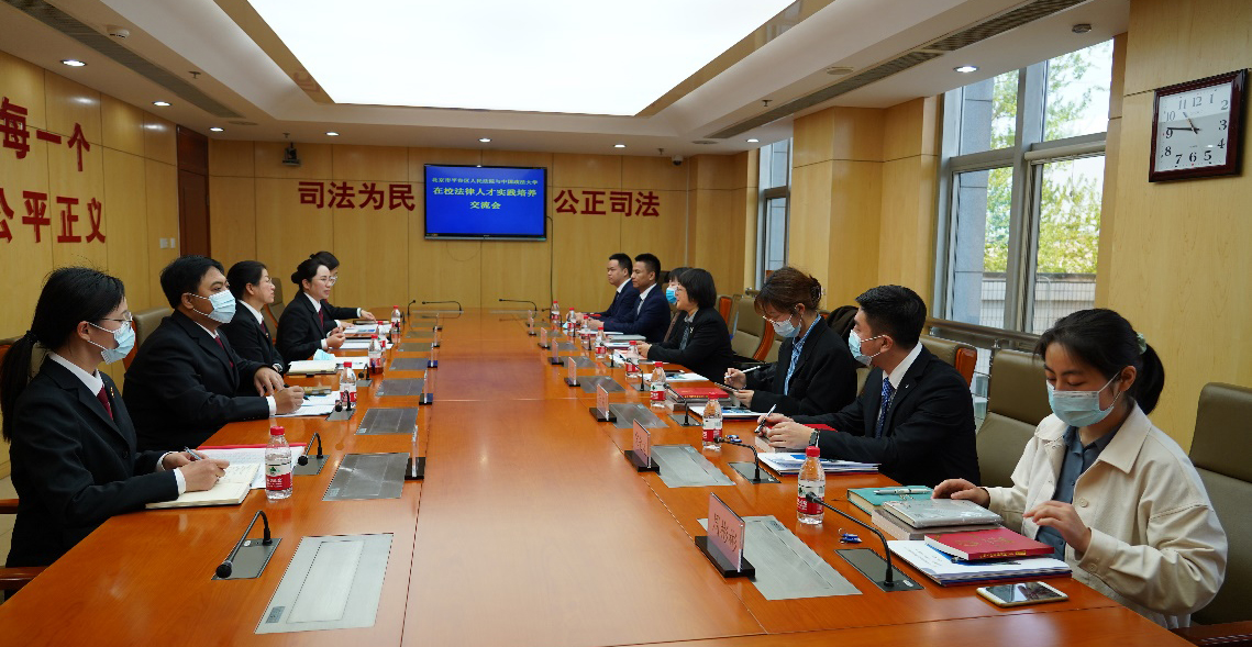 随后,法院在三层会议室召开了“在校法律人才实践培养交流会”。平谷区人民法院党组成员、副院长王晓蓉,法律硕士学院副院长刘智慧,法律硕士学院教科办主任黄晓慧,平谷区人民法院党组成员、政治部主任白雪英,政治部副主任韩海龙,政治部综合组负责人赵晓琳,政治部综合组副组长王婷婷,以及当天报到的6名实习生参加了会议。