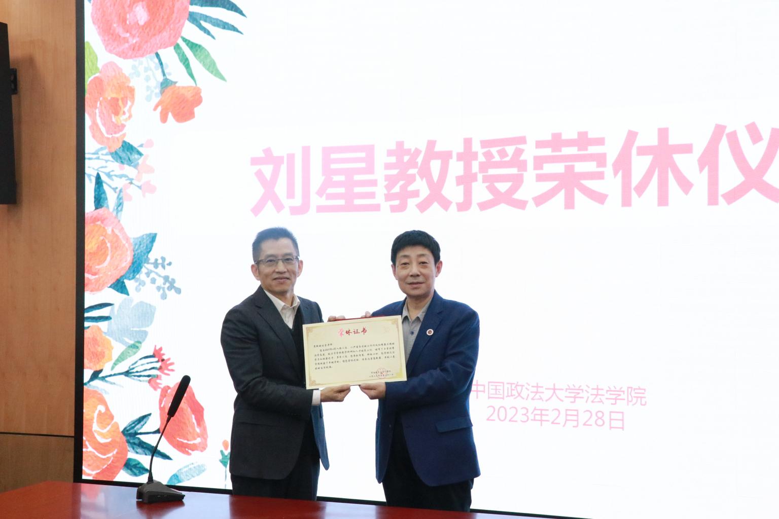 刘大炜宣读并为刘星教授颁发了荣休证书