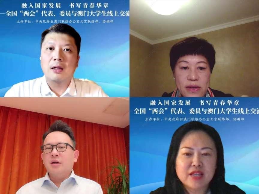 在互动交流环节,2021级博士研究生宋溦同学代表我校与代表、委员进行线上交流,她针对澳门人才引进制度、人才培养方面的规划以及如何对在内地、港台地区以及海外高校就读的澳生进行职业发展的指引进行了提问,何敬麟代表仔细解答了问题,并表示今后将进一步致力于将澳门经济多元发展与澳门青年的就业创业与人才培养相结合,吸引更多优秀澳门大学生回澳就业。