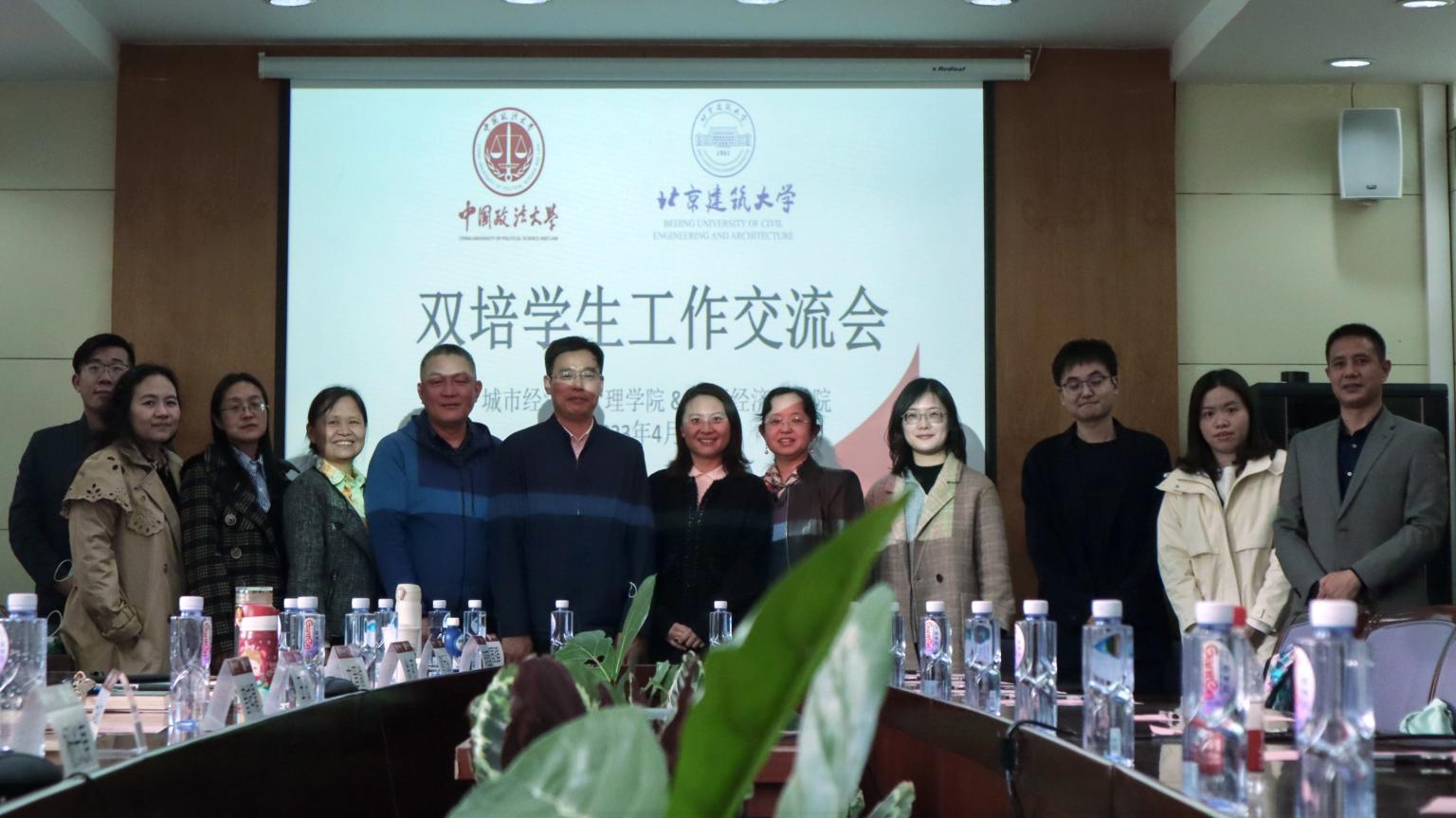 北京建筑大学法律系主任左金风及法律系教师、班主任、辅导员代表,我校民商经济法学院教学科研办公室、分团委负责人、双培班班主任以及来自双方学校2021级、2022级法学专业学生代表和双培生代表共同参加会议。