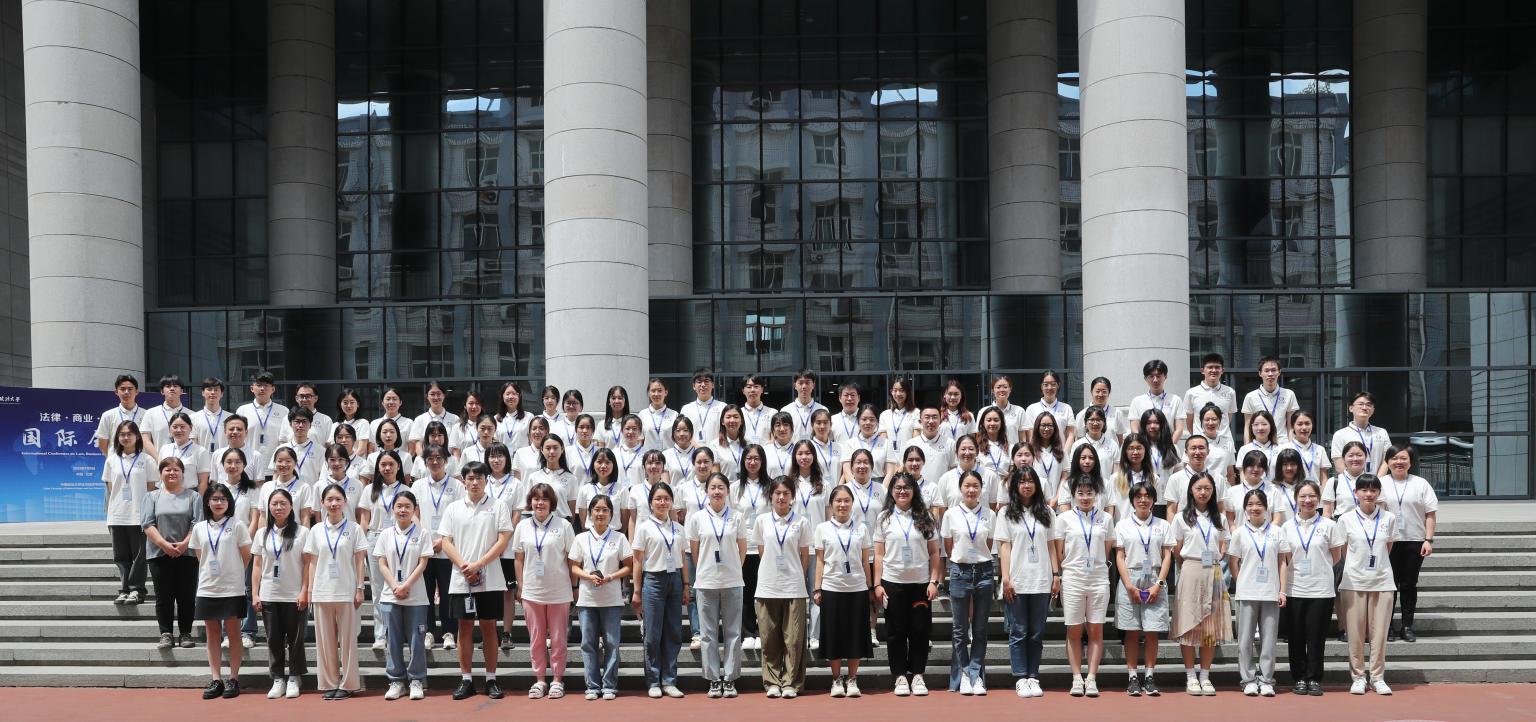 全体营员代表与学院老师在教学图书综合楼前合影留念。希望各位同学在为期三天的夏令营中,在名师沙龙、国际法律前沿讲座、中欧法学院校友法律职业前景分享会、师生交流会等活动中有所收获。