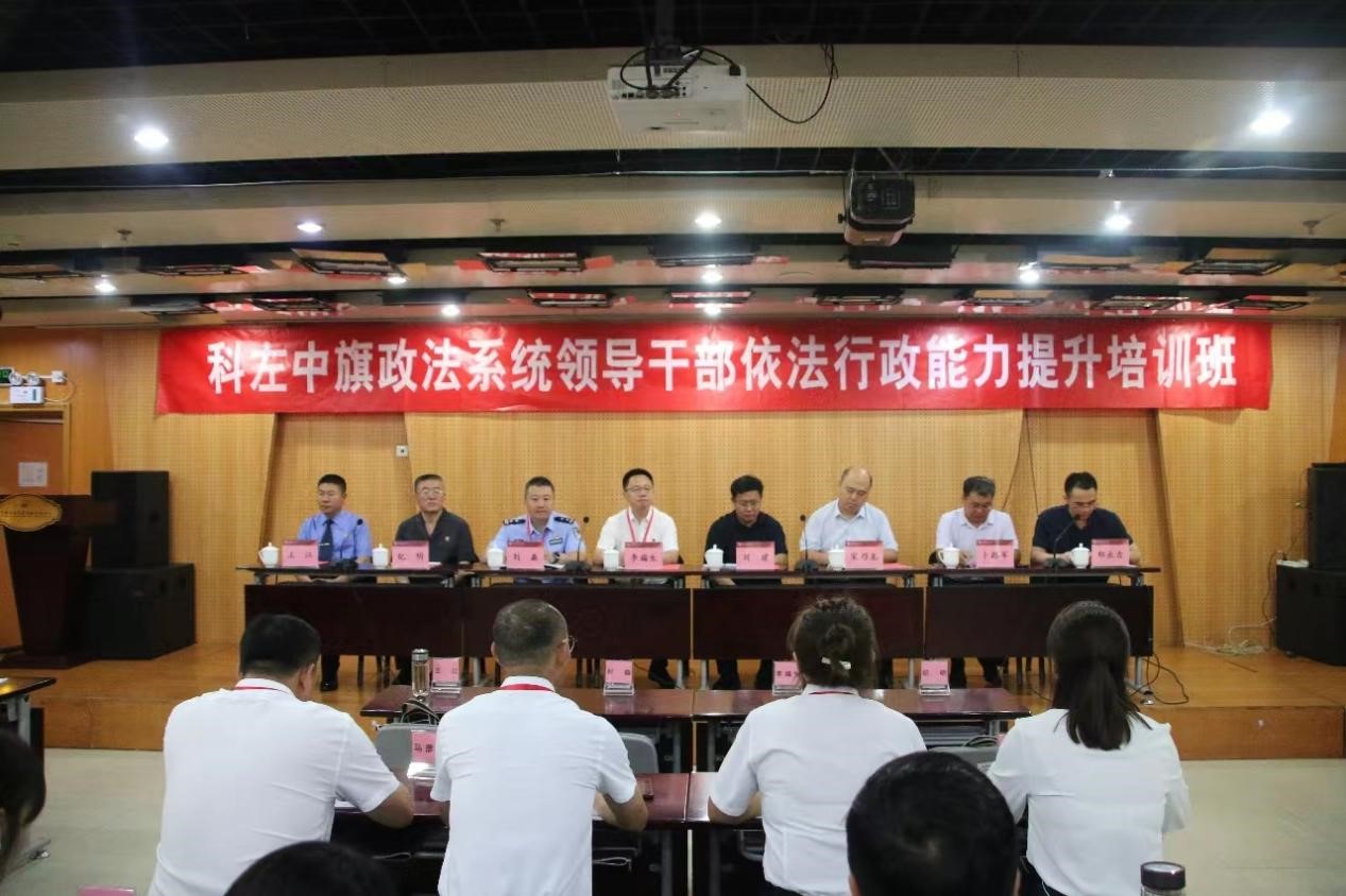 (特约通讯员 宋歌)8月21日,科左中旗政法系统领导干部依法行政能力提升第一期培训班开班式在我校举办。科左中旗委副书记、政法委书记李福生,人民政府副旗长、公安局长刘淼,人民法院院长纪明,人民检察院检察长王江,我校国内合作处处长刘建,继续教育学院院长兼中央政法培训学院执行院长宋乃龙,学生处副处长、科左中旗人民政府副旗长(挂职)卜路军出席开班式。开班式由中央政法培训学院执行副院长郑永吉主持。科左中旗政法各单位、信访局班子成员、乡镇政法委员和信访员60余人参加培训。