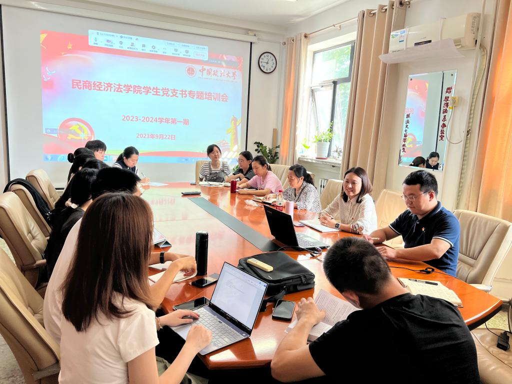 为深入学习贯彻习近平新时代中国特色社会主义思想,全面落实新时代党的建设总要求,落实《中国共产党普通高等学校基层组织工作条例》《中国共产党发展党员工作细则》,进一步推进基层党务工作制度化、规范化、科学化,切实提高学生党员培养质量,9月22日下午,民商经济法学院党委在昌平校区和海淀校区同步召开了“民商经济法学院学生党支部书记专题培训会”,会议邀请学校党委组织部王琦老师做题为“高质量做好发展党员工作”的报告,学院党委副书记王彤、全体兼职组织员、学生党支部书记参加培训,培训由专职组织员姜晓琳主持。