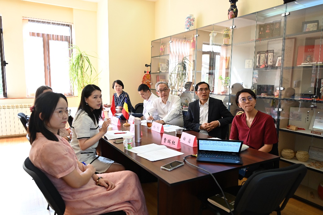 当地时间9月10日,中国社会科学院俄罗斯东欧中亚研究所副所长田德文率队访问我校共建罗马尼亚布加勒斯特大学孔子学院(以下简称“布大孔院”),随行人员为科研处副处长、研究员徐刚,转型和一体化理论研究室副研究员鞠豪,助理研究员曲岩、贺婷。布大孔院罗方院长白罗米(Luminița Bălan)、中方院长苏宇、院长助理曹瑞红、公派教师黄斯雯出席会议。