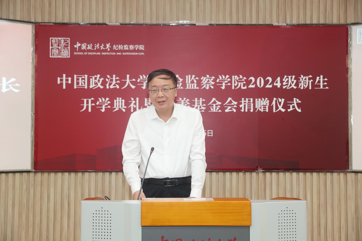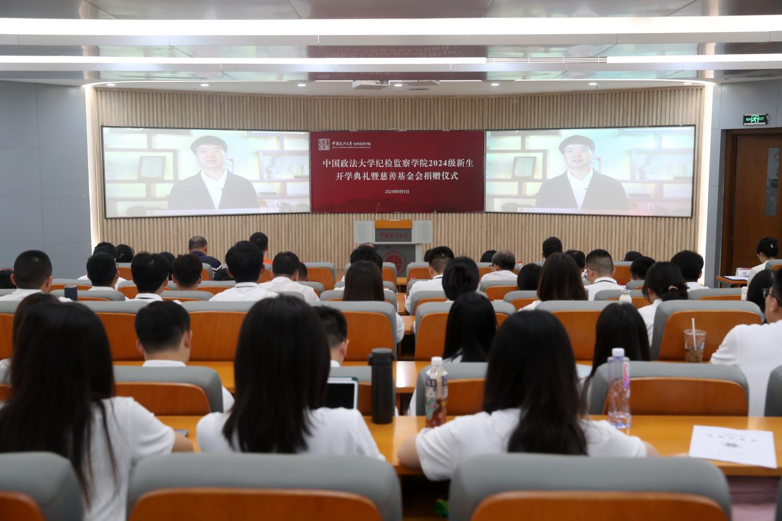 9月5日上午,纪检监察学院2024级新生开学典礼暨慈善基金会捐赠仪式在海淀校区举行。