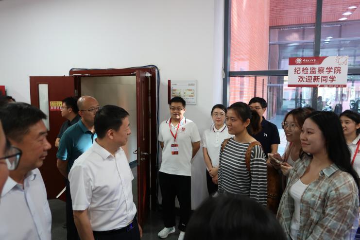 学校领导高度重视此次迎新工作。当日下午,校党委书记胡明、校长马怀德等校领导莅临学院迎新现场视察,仔细询问新生报到情况,对新生的到来表示热烈欢迎,并向现场工作人员和志愿者致以慰问。校领导指出,纪检监察是一门重要的新兴学科,该学科人才的培养对国家治理至关重要。校领导特别肯定了学院组建“清风宣讲团”赴基层宣讲、组织研究生赴相关部门实习等切实举措,鼓励学院在纪检监察人才培养上更上一层楼。