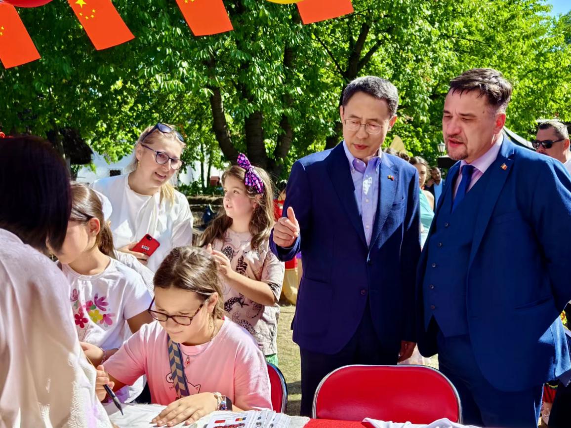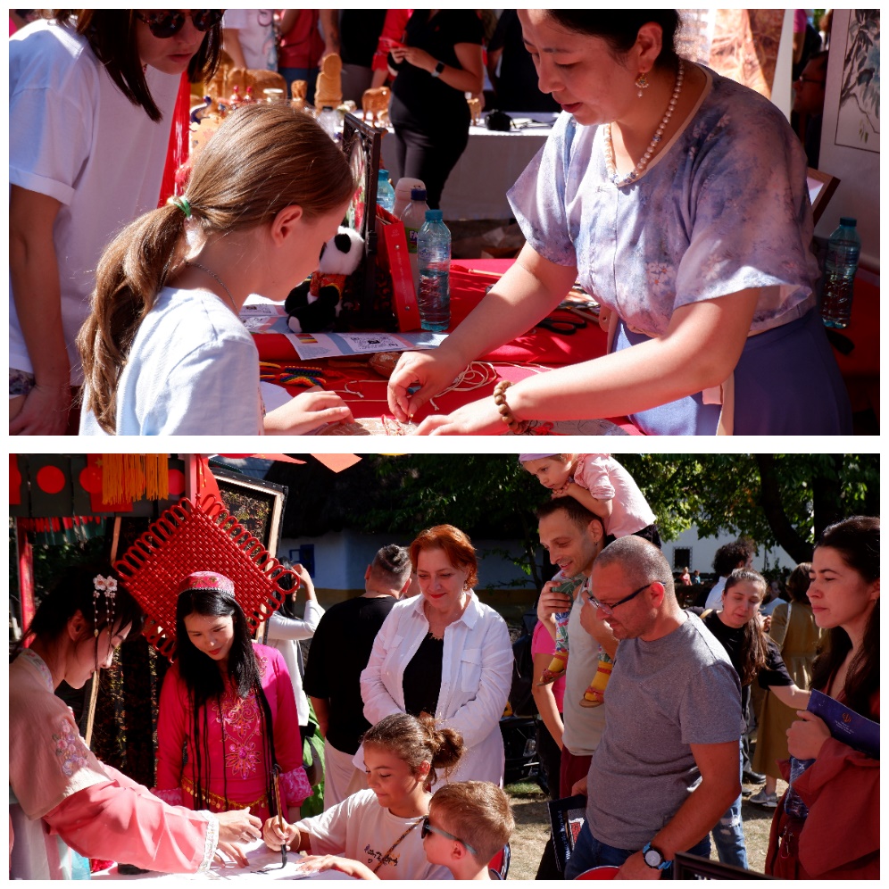 当地时间9月28日,由亚洲国家驻罗马尼亚使馆联合主办的亚洲文化节(Asian Cultural Festival)在罗国家乡村博物馆(Dimitrie Gusti)举行,我校共建罗马尼亚布加勒斯特大学孔子学院(以下简称“布大孔院”)应邀参加本次活动。来自中国、马来西亚、越南、日本、伊朗等13个亚洲国家的代表团相聚于此,展示本国特色艺术文化、表演传统民族歌舞等。中国驻罗马尼亚大使韩春霖、罗马尼亚外交部国务秘书赫里斯泰亚亲临孔院展位交流。