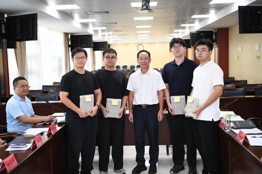随后,4名实习生依次作实习总结发言。梅国顺把三个月实习总结为一段充实、多彩、难忘的经历,一次宝贵的实践机会,一趟个人能力全面提升的历程。他表示通过实习,自己深化了对纪检监察理论的理解,实现了专业素养与综合能力的双提升。杨超凡围绕实践、温暖、信念三个关键词发表了他的实习感想。他表示,在海南省纪委监委的集体实习经历,让他真正做到了“深学活用”,未来将以饱满的热情和坚定的信念投身纪检监察事业的远大志向。郭金城则从温度、制度、深度、广度、宽度五个方面分享了他的工作体会。他表示,通过实习,自己对党风廉政建设和反腐败斗争有了更直观的认识,在未来学习工作中会更加注重理论与实践相结合。吕一彤围绕坚守、感谢、归属对自己的实习生活进行了回顾总结。他表示会积极复盘此次实习活动的经验,并且将实习实践中的所见所闻所思所想所得,与纪检监察的学科发展相结合,把握好纪检监察体系信息化这一新质生产力,为推动数字化纪检监察体系贡献自己的力量。