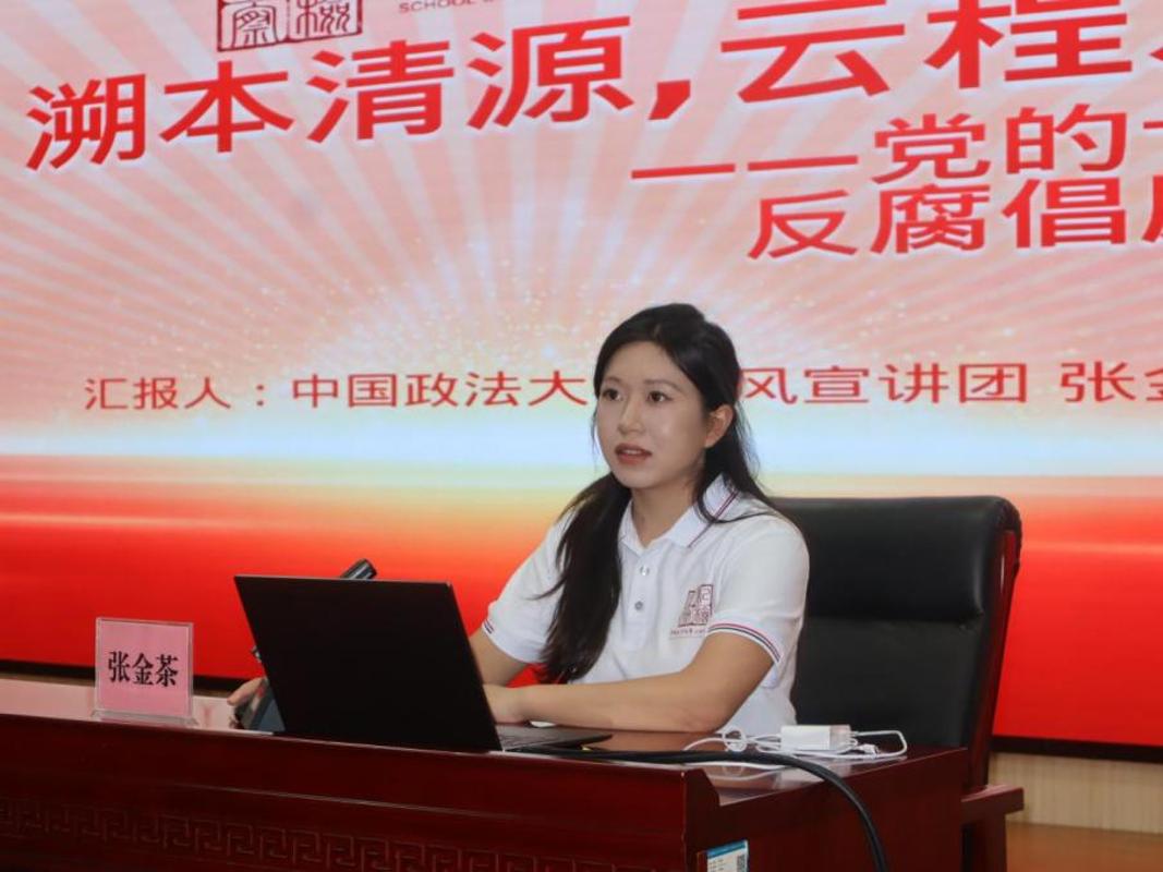 张金茶作了题为《党的十八大以来我国反腐倡廉治理的新发展》的主题宣讲。她以“如何跳出治乱兴衰的历史周期率”的第二个答案作为切入点,围绕党的二十届三中全会精神,以及党的十八大以来我国纪检监察体制改革的发展,梳理了党的十八大以来党和国家监督体系的发展以及通过建国以来纪委发展的历史脉络来进一步阐明纪检监察体制改革的变与常,进一步揭示了其背后的深层逻辑与规律。最后,她分析论述了党的十八大以来全面从严治党所取得的历史性、开创性成就,从制度构建到实践执行,从党员干部的思想自觉到行动自觉,都发生了根本性的变化,这彰显了党中央坚定不移推进全面从严治党的决心和勇气。