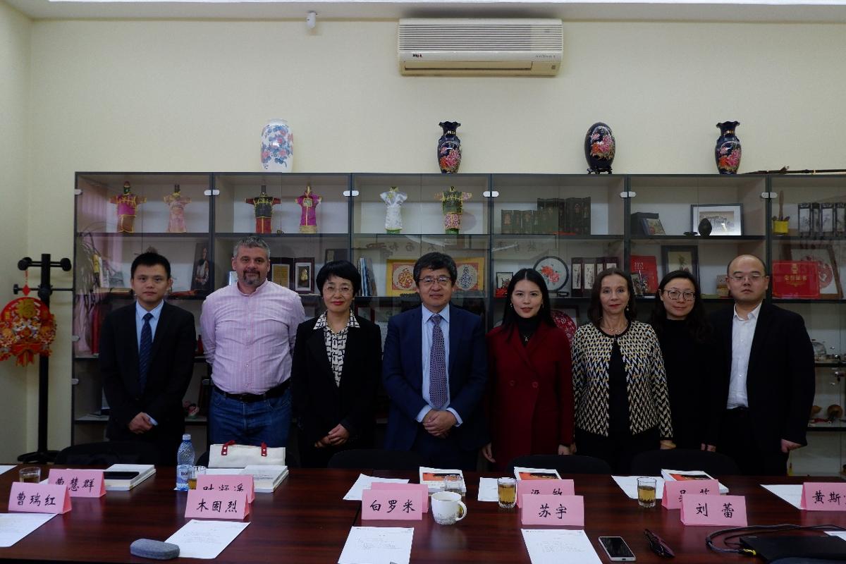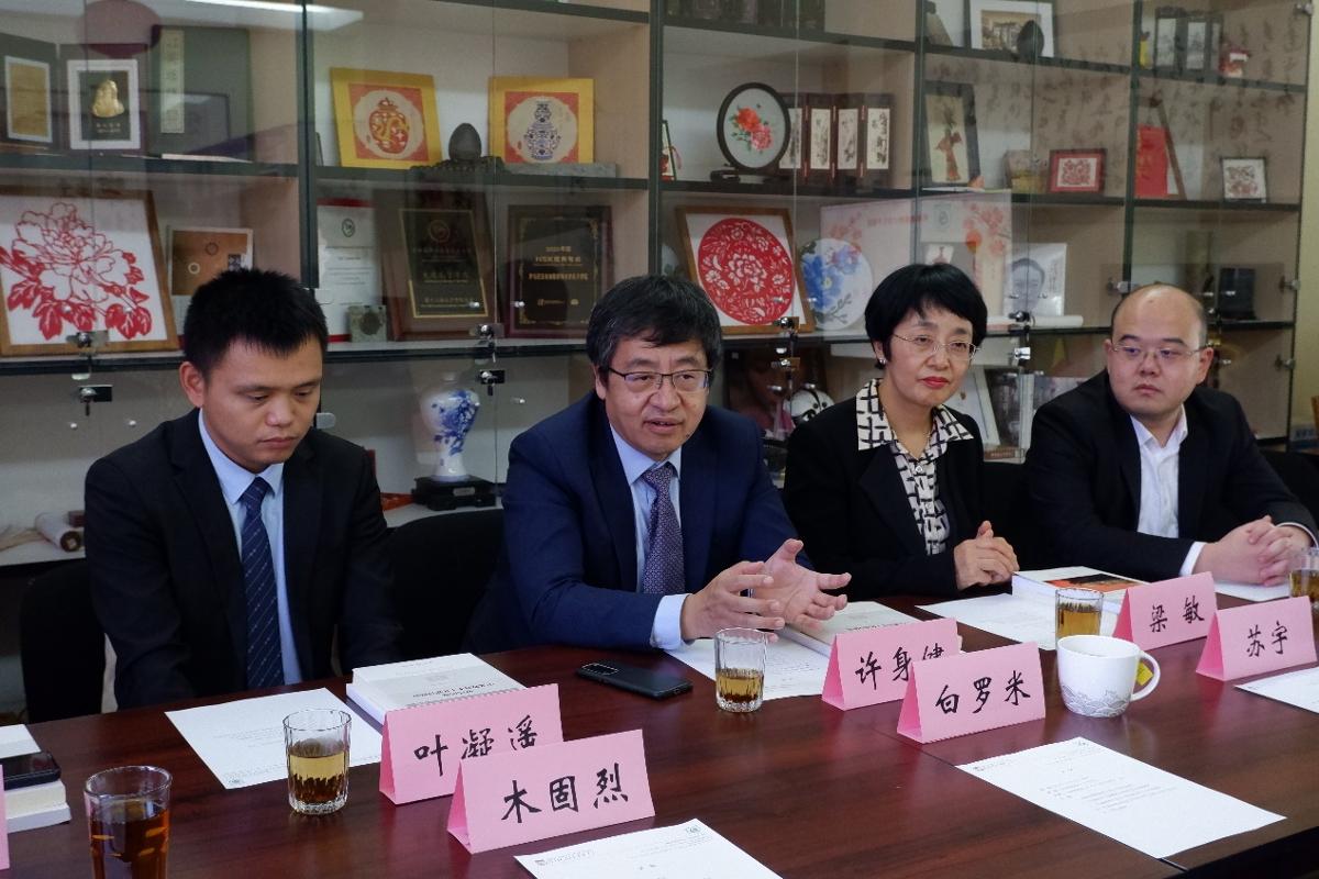 苏宇向代表团介绍了布大孔院在中文教学、文化活动及特色项目开展、学术研究等方面取得的工作成果。