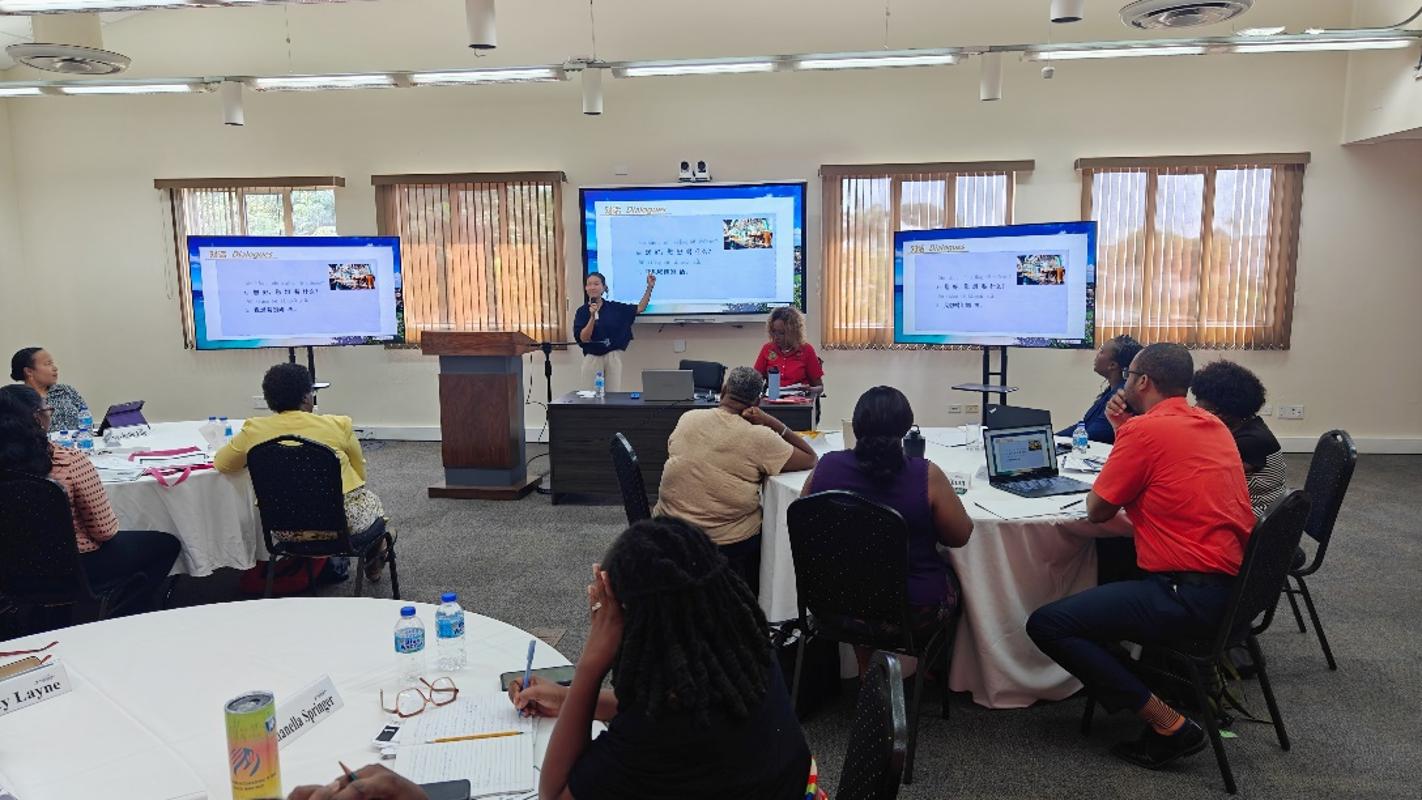 2024年秋季学期,我校共建巴巴多斯西印度大学凯夫希尔分校孔子学院(以下简称“巴巴多斯孔院”)于10月17日至11月21日开设了初级商务及旅游中文课程。此次课程主要针对巴巴多斯公共服务部门的政府职员进行商务中文培训,由孔院公派教师李青墨和本土兼职教师玉洁(Joycelyn Sealey)共同负责为期六周的中文教学工作。课程旨在为政府职员提供基础的中文语言培训,帮助他们在商务和旅游领域更好地与中国伙伴进行沟通。
