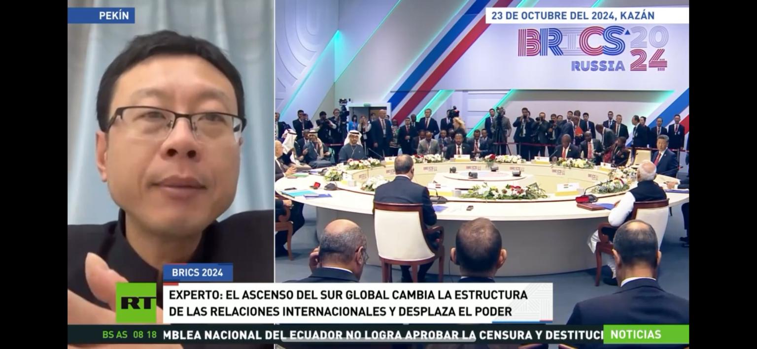 金砖国家领导人第十六次会晤在俄罗斯喀山召开前夕,我校比较法学研究院副教授潘灯接受今日俄罗斯电视台专访。10月22日至24日峰会召开期间,其西班牙语频道以滚动播出的形式在整点新闻节目对采访内容进行了播出。在接受采访中,潘灯就“金砖国家在国际治理中的作用”“全球南方维护以国际法为基础的国际秩序”“新兴经济体联合抵御风险与挑战”“发展中国家推动建立公正合理的国际秩序”“‘大金砖合作’提质升级”等话题进行了详尽阐述。