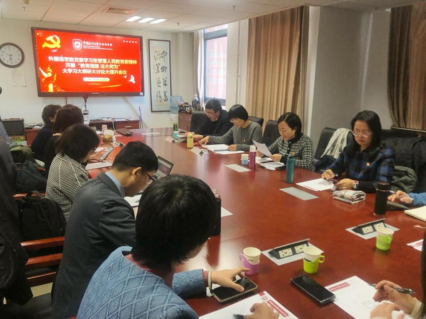 参观结束后,外国语学院党委随即召开“教育强国,法大何为”主题会议,结合参观内容,深入开展研讨与调研工作。