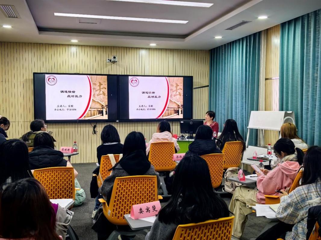 12月11日下午,外国语学院二级心理辅导服务站“悦读研学·玉兰心舍”第三期“调试情绪,应对压力”团体辅导在昌平校区举办,由我校心理咨询中心专职咨询师宋歌主讲。外国语学院的团委副书记吕梦婷与14名同学参加了本期研学工作坊。