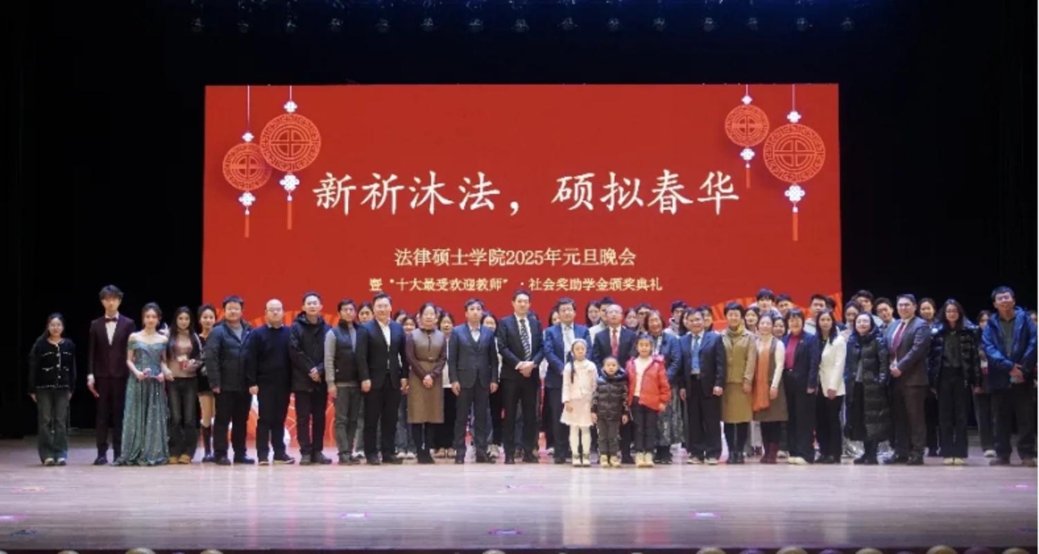 12月14日,我校法律硕士学院2025年“新祈沐法,硕拟春华”元旦晚会在昌平校区举行,院长许身健,院党委书记韩文生,副院长刘智慧,副院长梁敏,离退休工作处副处长姚梅娟,法律硕士学院教师代表和社会奖助学金的捐赠方代表出席晚会,与学院全体学生一同共度佳夜。