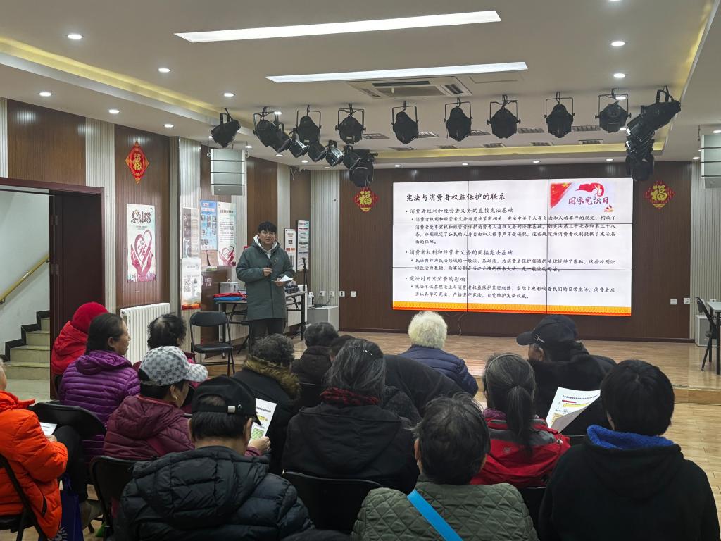 为迎接12月4日国家宪法日的到来,弘扬宪法精神,以党建引领志愿服务品牌建设,为普法宣传活动注入青年力量,12月3日下午,中欧法学院2024级3班的党员志愿者们走进北京市东城区龙潭街道幸福社区,以“保障银发消费者权益,护航幸福晚年”为主题,为社区老年居民开展了一场消费者权益保护宣讲活动。本次活动由易驰程主持,支部党员参与了此次活动。