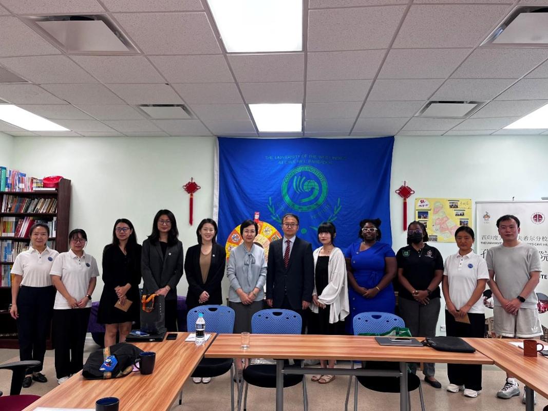 当地时间12月11日至13日,中国教育部中外语言交流合作中心(以下简称“语合中心”)代表团访问我校共建巴巴多斯西印度大学凯夫希尔分校孔子学院(以下简称“巴巴多斯孔院”)。语合中心发展规划处副处长毛彦成、政策研究处项目官员谢彭、美大处项目官员张盈珊一行三人到访巴巴多斯,就中文教育推广及中巴文化交流与当地相关机构展开系列会谈。