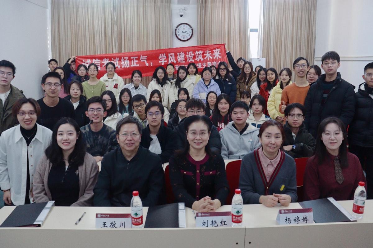 为深入践行社会主义核心价值观,弘扬诚信精神,营造良好学风,刑事司法学院 2402 班于 12 月 18 日下午在端升楼 举办了 “诚信考试扬正气,学风建设筑未来” 主题班会。此次班会旨在增强同学们的诚信考试意识,帮助大家全面掌握学校考风考纪规章制度,调整考试心态,以积极饱满的状态迎接期末考试。副校长兼刑事司法学院院长刘艳红,学生工作部副部长杨婷婷,刑事司法学院党委副书记王敬川参与了本次班会,与同学们进行深入交流。