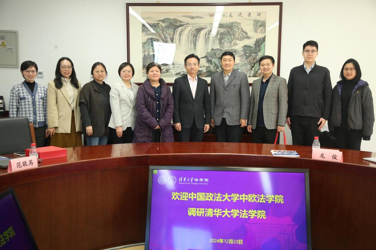 12月23日,中欧法学院院长兼党委书记刘飞带队赴清华大学法学院,围绕优化涉外法治人才培养模式、法学专业中外合作办学的提质增效等方面展开调研。清华大学法学院党委书记邓海峰接待了刘飞院长一行,清华大学法学院副院长龙俊、清华大学法学院教务办公室主任范春燕、党委研究生工作组组长肖源睿、外事办公室副主任范敬苒参加会议。