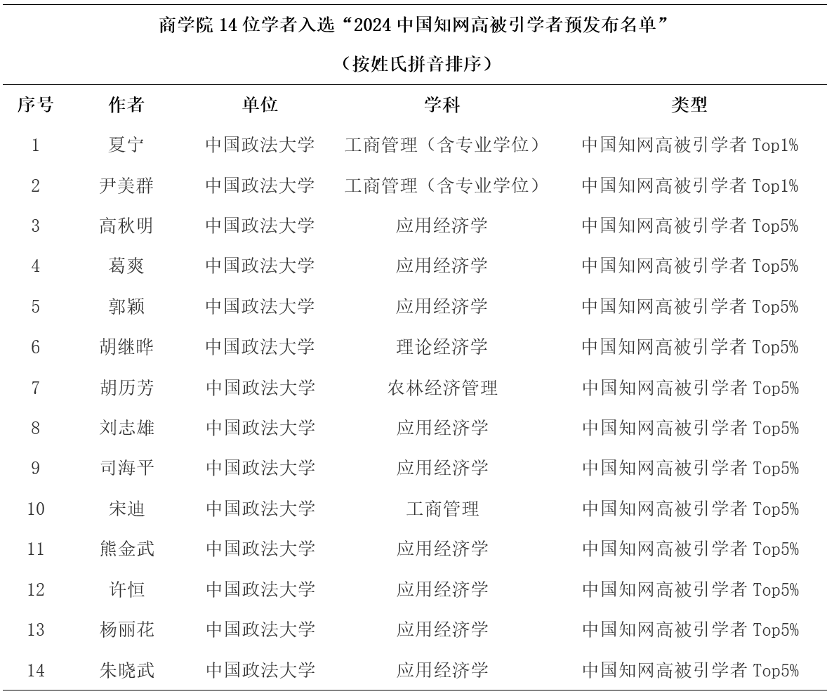 近日,中国知网首次开展学者学术影响力客观评价,遴选并发布了“2024中国知网高被引学者”预名单,2026美加墨世界杯比赛时间商学院14位学者入选。其中,高被引学者TOP1%学者2位,高被引学者TOP5%学者12位。