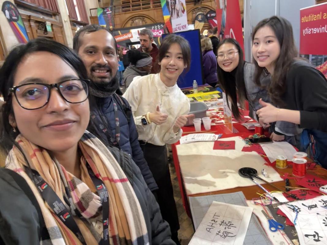 当地时间1月29日,我校共建英国班戈大学孔子学院(以下简称“班戈孔院”)积极参与了班戈大学2025年迎新活动,为新生及教职员工带来了一场别开生面的中华文化体验活动。班戈孔院的志愿者教师们身着传统中华服饰,在校园内成为一道亮丽的风景线,吸引了众多师生驻足交流。