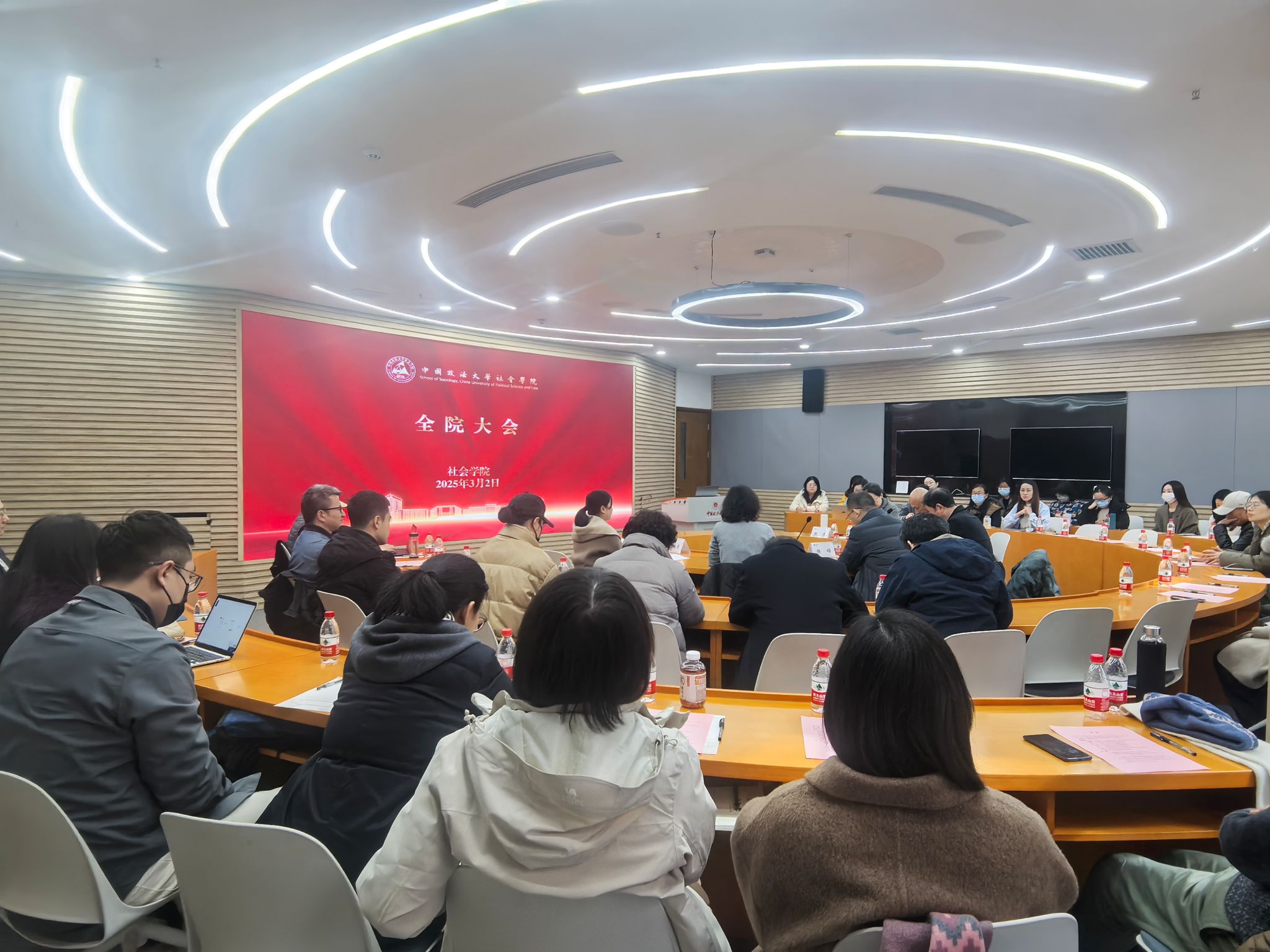 3月2日,社会学院召开全院大会,校党建督导员李国强,北京工业大学社会学院副院长陈锋,社会学院党委书记杨学志,副院长杨清媚、张卓,党委副书记、纪委书记刘晓倩以及全体教职工出席会议。会议由杨清媚主持。