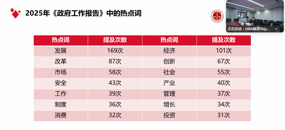 商文江首先对2025年《政府工作报告》的总体框架进行了梳理。他指出,报告首先回顾了过去一年经济社会发展的总体情况,明确了本年度的主要预期目标,并围绕目标详细阐述了各领域的重点工作举措。最后,报告强调了政策落实的体制机制保障,并对未来发展进行了展望,呼吁全社会共同努力。