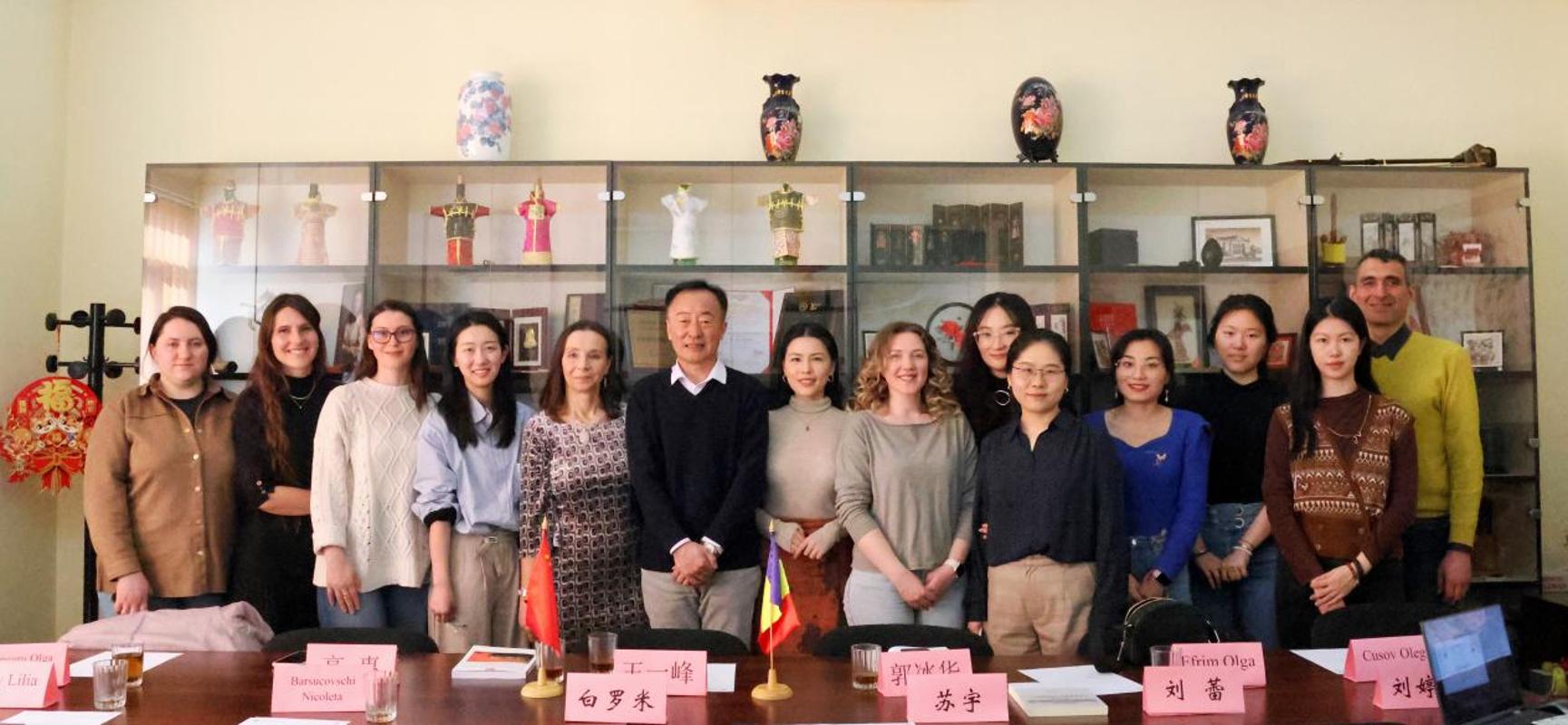 当地时间3月7日,摩尔多瓦自由国际大学孔子学院院长王一峰一行到访我校共建罗马尼亚布加勒斯特大学孔子学院(以下简称“布大孔院”)开展交流座谈。布大孔院罗方院长白罗米(Luminița Bălan),中方院长苏宇,孔院国际中文教育公派教师、志愿者以及本土教师代表参加座谈。