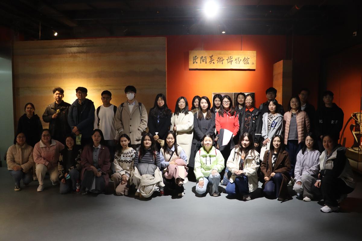 随后,全体师生来到了民间美术博物馆,深入领略中华传统工艺之美。展馆展出的300余件精选藏品,其中木雕宗祠、金漆人物拔步床、土家织锦等多件极具代表性的作品引发了同学们的热烈讨论。这些展品不仅是技艺的结晶,更是民族精神的物化表达;不仅承载着地域文化符号和传统造物智慧,更体现了守正创新的工艺脉络和精益求精的工匠精神。