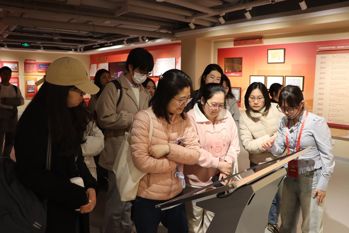 北京工业大学党建馆是北京高校首家党建馆,具有丰富内容与表现形式。在理论教学区,师生们借助图文、视频等形式深入学习习近平总书记重要讲话精神、党的先进理论,深刻认识到新时代青年的使命担当。案例教学区中,大数据技术呈现的党建动态分析平台、教师“青马班”项目以及“一院一品”党建品牌等特色实践,展现了高校党建与学科建设深度融合的创新路径。在互动教学区,VR设备带大家“云游”中共一大纪念馆等十余个知名党建馆,沉浸式体验让红色历史“触手可及”。本次考察学习在理论和实践层面为学院开展党建工作提供了先进经验和生动参考。