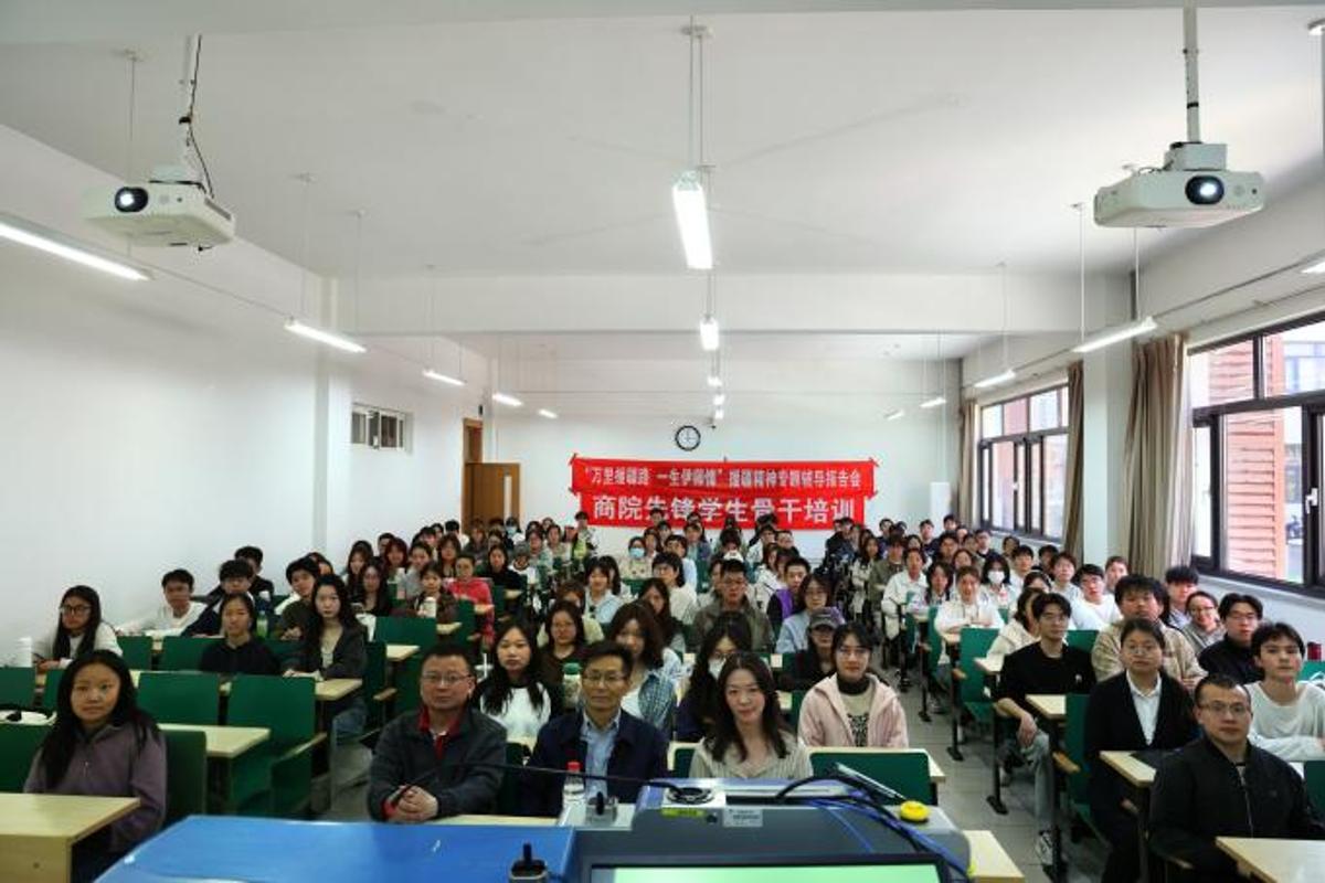 活动尾声,全体嘉宾、学生骨干及学生党员共同留下了难忘的合影。此次报告会暨先锋学生骨干培训活动在热烈的气氛中圆满落幕。本次活动为商学院学生思政工作注入了新的活力,激励着同学们在全面建设社会主义现代化国家的新征程中贡献自己的青春力量。