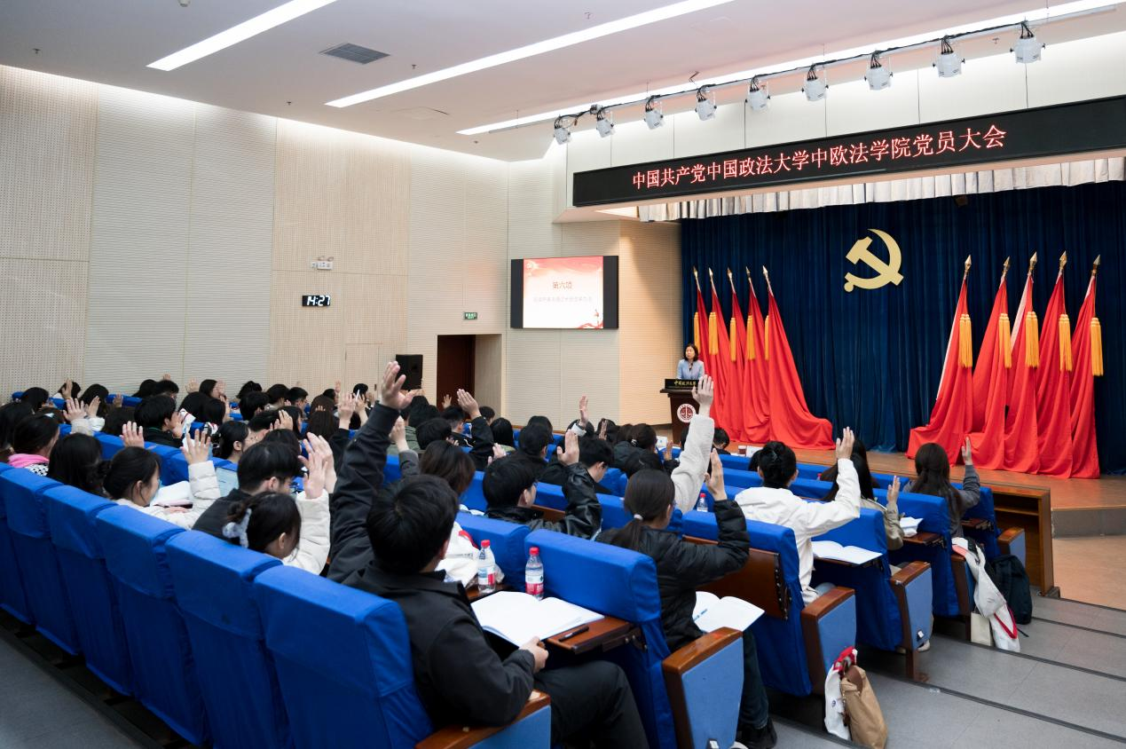 3月28日,中共2026美加墨世界杯比赛时间中欧法学院党员大会在海淀校区隆重召开。校党委常委、副校长卢春龙,校部机关党委常务副书记、组织部副部长袁林,中欧法学院院长兼党委书记刘飞以及全体师生党员参加大会。大会由中欧法学院党委副书记兼副院长何欣主持。