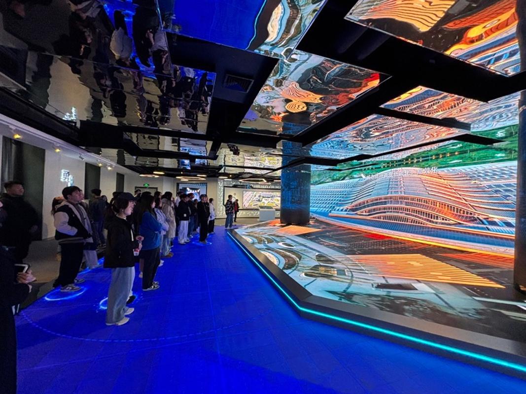 师生在剧村"1+5+x"城市智慧能源融合站观看相关影像。蒋智卓 摄