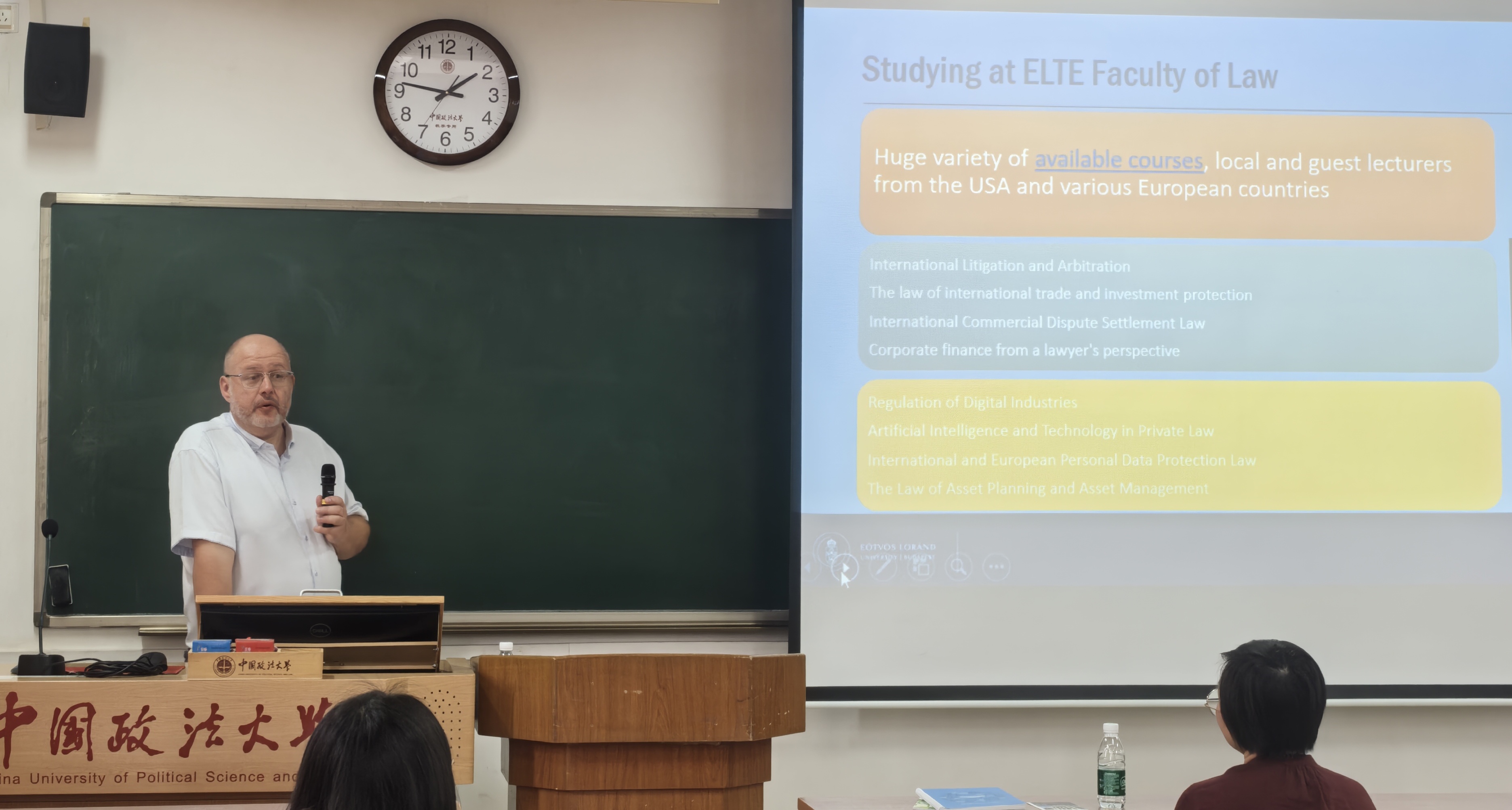 随后,Ákos Udovecz详细介绍了罗兰大学法学院。作为拥有350多年历史的顶尖学府,罗兰大学地理位置优越,校园环境幽美,法学院在欧洲享有盛誉,每年吸引众多国际留学生。课程设置方面,法学院提供丰富多元的选修课程,如《数据产业规制》《私法中的人工智能与技术》及《国际及欧洲个人数据保护法》等前沿课程,旨在拓宽学生国际视野,紧跟时代步伐。
