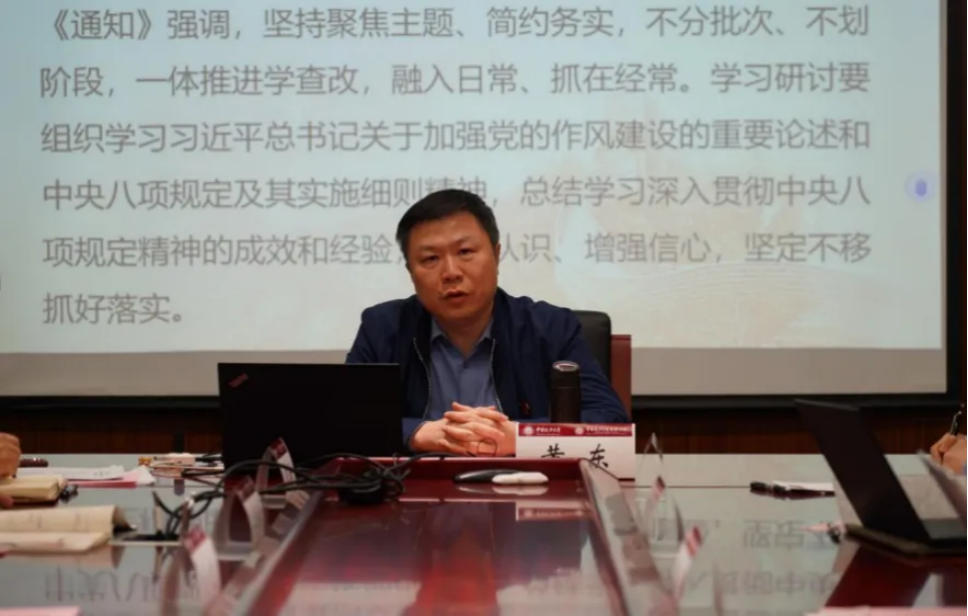 刘建就扎实开展深入贯彻中央八项规定精神学习教育读书班活动作动员部署。他强调,本次读书班既是落实校党委部署的政治任务,更是以作风转变助推法学教育高质量发展的动员令。首先,要铸牢政治忠诚,深刻领悟“两个确立”的决定性意义,从百年党史中把握作风建设规律,立足法学教育强化使命担当。其次,要聚焦学查改贯通,以学筑基,以查破题,以改增效,形成“学习-查摆-整改-提升”的完整链条。最后,要强化“‘三牛’精神”,争当服务师生的孺子牛,以师生需求为导向优化服务;勇做改革攻坚的拓荒牛,在法学教育改革中敢闯敢试;甘为清正廉洁的老黄牛,永葆共产党人政治本色。