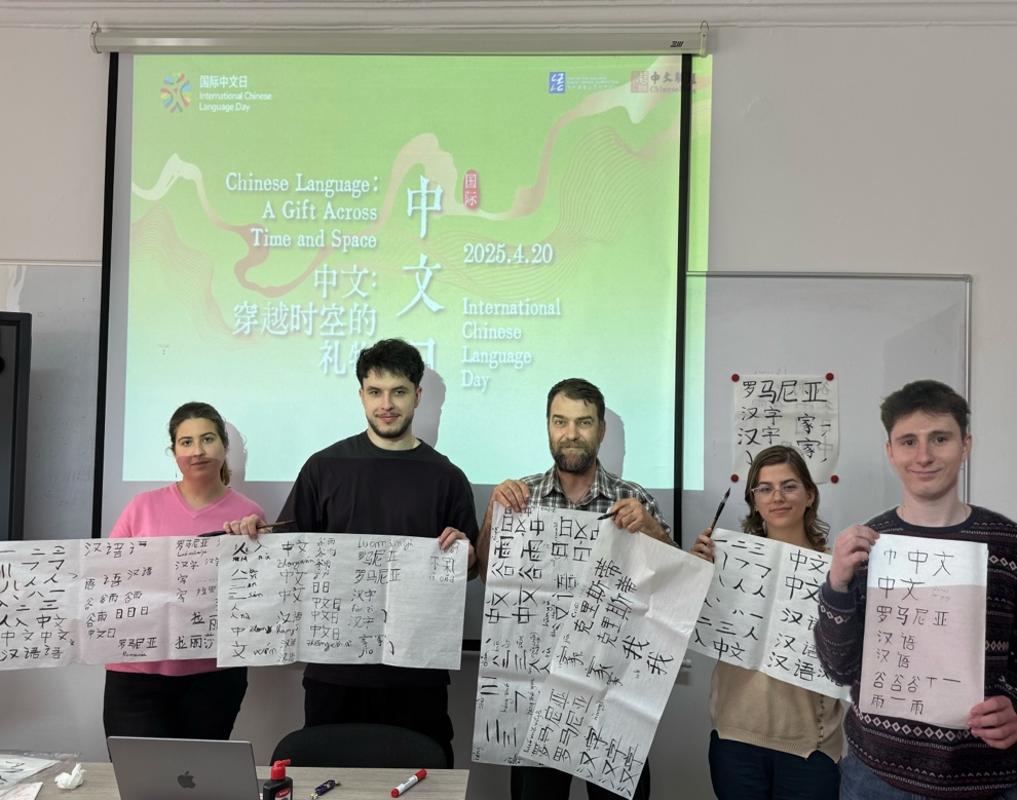 当地时间4月17日,为庆祝第十六个国际中文日的到来,我校共建罗马尼亚布加勒斯特大学孔子学院(以下简称“布大孔院”)下设巴克乌瓦西里·亚历山德里大学教学点举办了“中文:穿越时空的礼物”书法文化活动。国际中文教育志愿者金禹杉带领瓦西里·亚历山德里大学汉语班全体学生参加本次活动。