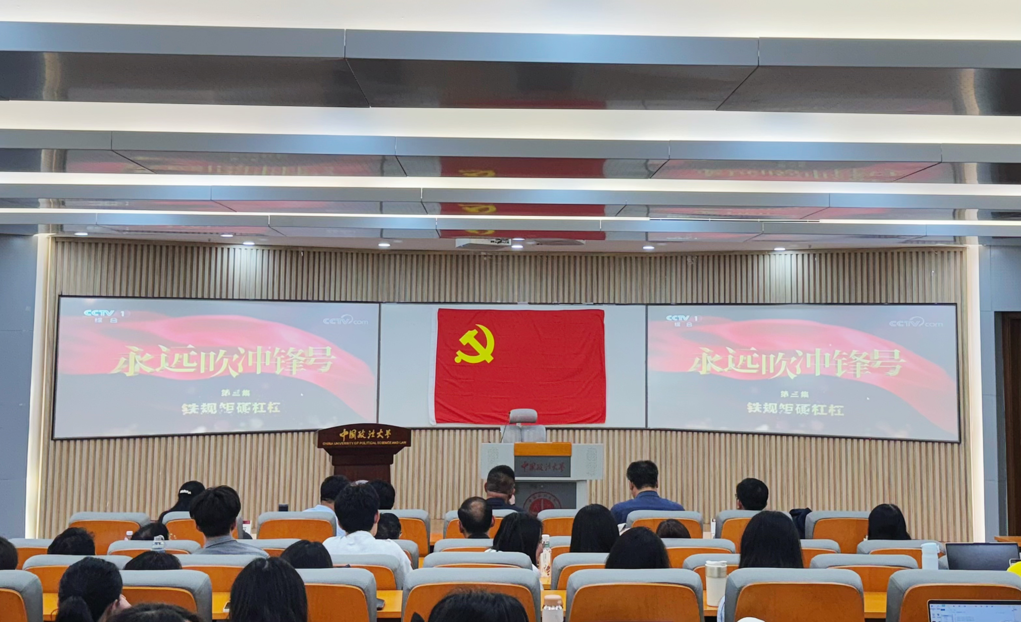专题辅导报告之后师生党员一同观看了《永远吹冲锋号》专题片第三集《铁规矩硬杠杠》,开展反面典型案例学习。