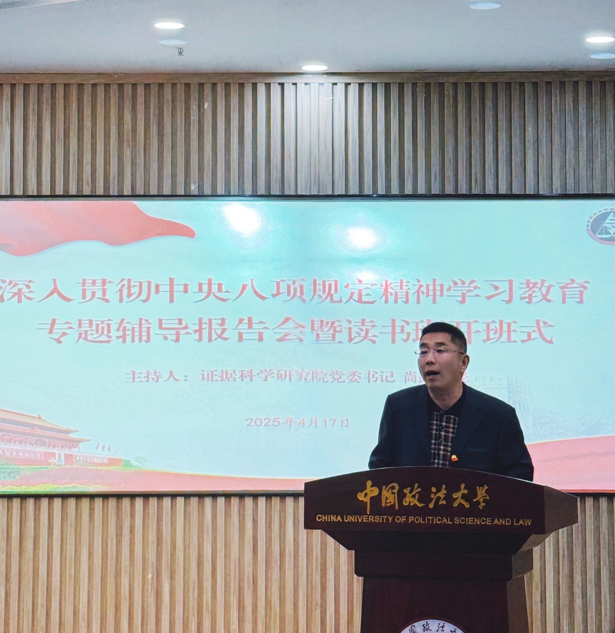 为进一步推动文化涵育,营造学习教育浓厚氛围,提升学习实效,4月17日,证据科学研究院党委在海淀校区图书综合楼0101教室举办深入贯彻中央八项规定精神学习教育专题辅导报告会暨学习教育读书班开班式。证据科学研究院党委书记尚武、院长彭文华,副院长张中,副院长赵东,副书记杨俊丽,证据法学研究所所长、党支部书记褚福民、法医学教研室主任、党支部书记杨天潼及师生党员和积极分子代表参加本次活动。本次活动由院党委书记尚武教授主持。